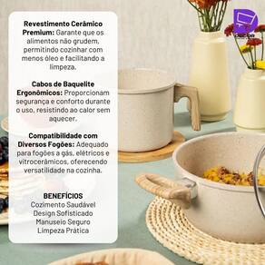 Revestimento cerâmico antiaderente: evita que os alimentos grudem e facilita a limpeza.