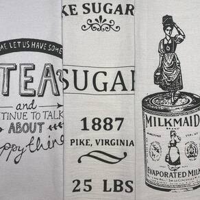 Estampas do conjunto: Tea, Sugar e Leite Moça.