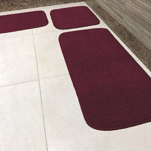 Jogo De Passadeira Primavera Para Cozinha 03 Peças Com Base Antiderrapante 100% Polipropileno - Bordô