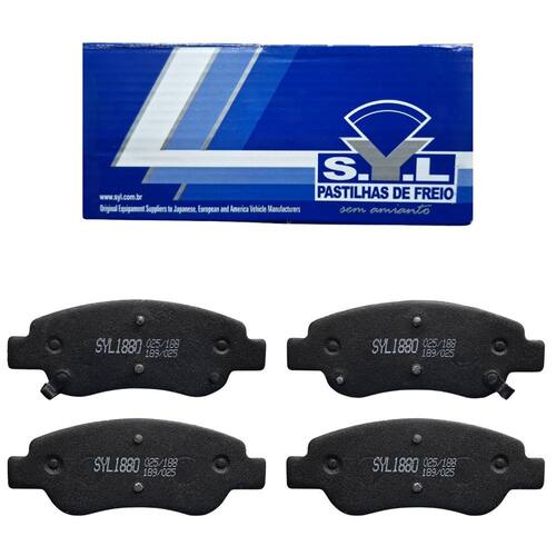 Jogo de pastilhas de freio Dianteiras SYL1880. Esta peça é um componente essencial de reposição para o sistema de frenagem no eixo dianteiro. É compatível com o JAC Motors GC2 1.0, para modelos fabricados a partir de 2015 em diante, e também com o JAC Motors J2 1.4 16V, para modelos a partir de 2012 em diante.