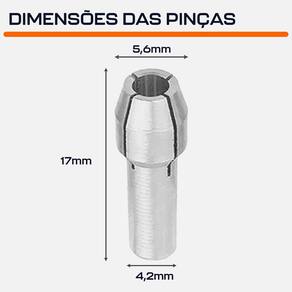 Jogo de pinças 1 a 3.2mm cauda 4,2mm para micro retíficas dremax - marca: dremax - referência: md040 - diâmetro da haste das pinças: 4.2mm padrão dremel 3000 e 4000 favor comparar com a sua máquina - material: aço - kit com as 5 pinças mais utilizadas - diâmetro das pinças: 1.0mm / 1.6mm / 2.4mm / 3.0mm / 3.2mm - pinça de 1mm pega hastes de 0.8 a 1.2mm - pinça de 1.6mm pega hastes de 1.4 a 1.8mm - pinça de 2.4mm pega hastes de 2.1 a 2.4mm - pinça de 3mm pega hastes de 2.7 a 3.0mm - pinça de 3.2mm pega hastes de 3 a 3.2mm - : 90 dias A dremax é a primeira e única marca brasileira dedicada exclusivamente às micro retíficas, acessórios e acoplamentos para esta indispensável ferramenta. Seja para trabalhos de precisão, artesanato, modelagem ou reparos, a dremax tem o produto certo para você. Marca: Não Informado