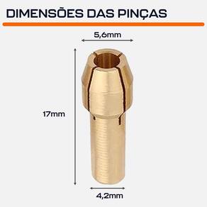 Jogo de pinças 1 a 3.2mm cauda 4,2mm de latão para micro retíficas dremax - marca: dremax - referência: md039 - diâmetro da haste das pinças: 4.2mm padrão dremel 3000 e 4000 favor comparar com a sua máquina - material: 100% latão - kit com as 5 pinças mais utilizadas - diâmetro das pinças: 1.0mm / 1.6mm / 2.4mm / 3.0mm / 3.2mm - pinça de 1mm pega hastes de 0.8 a 1.2mm - pinça de 1.6mm pega hastes de 1.4 a 1.8mm - pinça de 2.4mm pega hastes de 2.1 a 2.4mm - pinça de 3mm pega hastes de 2.7 a 3.0mm - pinça de 3.2mm pega hastes de 3 a 3.2mm - garantia: 90 dias A dremax é a primeira e única marca brasileira dedicada exclusivamente às micro retíficas, acessórios e acoplamentos para esta indispensável ferramenta. Seja para trabalhos de precisão, artesanato, modelagem ou reparos, a dremax tem o produto certo para você. Marca: Dremax