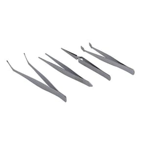 Esse Kit foi desenvolvido para manipulação de pequenas peças. Conta com 4 pinças em formatos distintos, o que possibilita manusear vários objetos diferentes.