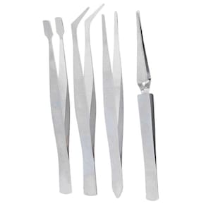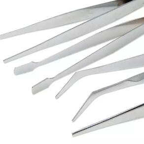 Esse Kit foi desenvolvido para manipulação de pequenas peças. Conta com 4 pinças em formatos distintos, o que possibilita manusear vários objetos diferentes.