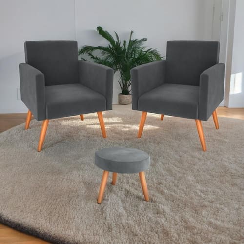 Conjunto de Poltronas e Puff é o ápice do conforto e do estilo. Com um design unico, combina elegância e funcionalidade, tornando-se o complemento perfeito para qualquer ambiente.