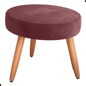 O tecido do puff é em veludo. Suporta até 90kg, espuma D20 assento