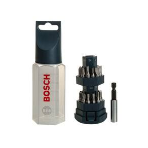 Descrição do Produto: Jogo de Bits para Parafusadeira conta com 25 peças feitas em aço resistente, oferecendo maior durabilidade. As peças são acondicionadas em um estojo plástico com visor transparente e compartimento para cada item, permitindo organização e praticidade. Ideal para utilização em parafusadeiras elétricas ou manuais de qualquer marca. Composto por: : Punho magnético universal :: 24 pontas de 25 mm : 2 x Fenda 4/6/7 2 x Phillips 1/2/3 2 x Pozidriv 1/2/3 2 x Tork 20/25/30 - Garantia:6 Meses Ref.: BOSCH-2607017404-000 Marca.:BOSCH Ean: 6949509227065