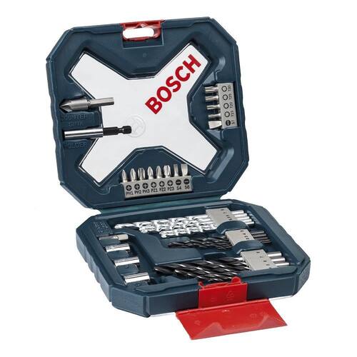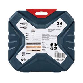 Características do Produto: Marca: Bosch Material: Aço rápido (HSS), revestimento em Titânio e componentes de Metal Tipo: Jogo de Pontas e Brocas Modelo: X-Line Cor: Preto, prata e cinza Contém: 34 peças EAN: 6949509227072