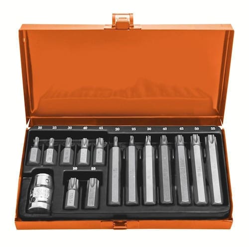 Jogo De Ponteiras Intercambiáveis Trafix - 15 Peças Tramontina Pro Tramontina Jogo de Ponteiras Intercambiáveis Trafix - 15 Peças Tramontina PRO Tramontina - Utilizado para apertar ou afrouxar parafusos com encaixe Trafix, o jogo de ponteiras intercambiáveis com 15 peças é indispensável para o mecânico. Possui perfil longo e curto que permite utilizar a ferramenta em locais de difícil acesso. Seu corpo é fabricado em aço ferramenta S2 temperado e o adaptador forjado em aço cromo vanádio. Para manter a organização na oficina e facilitar o transporte, o jogo acompanha maleta metálica e adaptador 1/2. Acelere o seu trabalho com as ferramentas automotivas da Tramontina PRO. Características Gerais do Produto: Garantia: - Garantia total contra vícios ou defeitos de fabricação.