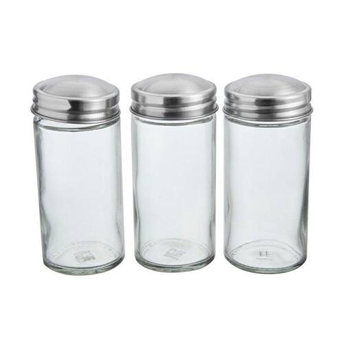 Com estrutura em vidro transparente e tampa em inox, os potes garantem a preservação da frescura dos alimentos.