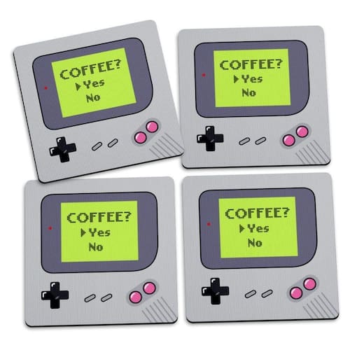 Faça sucesso ao servir suas bebidas com este jogo de porta copos inspirados nos mini games 8 bits de antigamente ^^