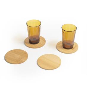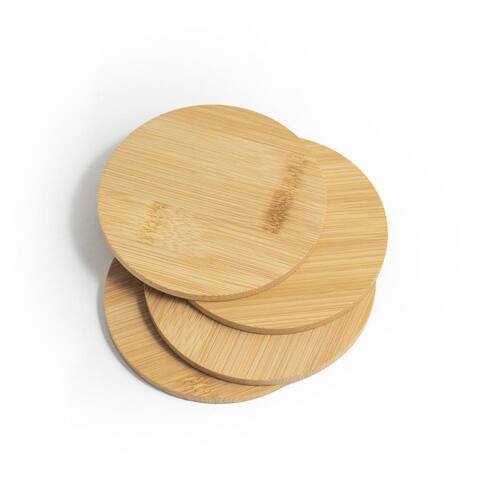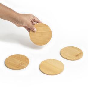 Esse é o jogo de porta copos redondo em bambu 4pcs da MOZCADA. Funcional: para copos, jarras e garrafas, quentes ou bem geladas