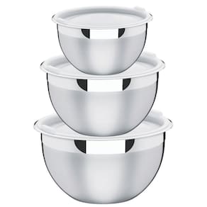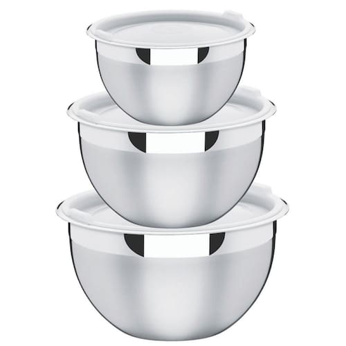 Jogo de Potes Cucina em Aço Inox com Tampa Plástica 3 Peças Tramontina O Jogo de Potes Tramontina em Aço Inox com Tampa Plástica 3 Peças, da linha Cucina, deixa sua cozinha mais completa, bonita e organizada. Produzido em aço inoxidável, conta com acabamento fosco por dentro e brilhante por fora, altamente durável, mantém as características originais, preservando a beleza, a higiene e a durabilidade do material. Com vedação perfeita, os potes podem ser utilizados para transportar, armazenar alimentos refrigerados e até para misturar e preparar saladas. Seu desenho limpo e sem cantos torna a limpeza muito mais fácil. Acabamento fosco com detalhes em brilho deixa o produto mais nobre. A tampa possui vedação perfeita para a boa conservação dos alimentos. Ideal para preparar e armazenar os alimentos, pode ir à geladeira ou ao freezer. Podem ser lavados diariamente na máquina de lavar louças. Potes lindos para você organizar tudo! Jogo de Potes Cucina em Aço Inox com Tampa Plástica 3 Peças Tramontina - Conteúdo do Jogo 01 Recipiente para Servir com Tampa (Compr. X Larg. X Alt.) 18,8 x 18,8 x 10,9 - Capacidade 1,6 litros 01 Recipiente para Servir com Tampa (Compr. X Larg. X Alt.) 22,8 x 22,8 x 12,9 - Capacidade 3,0 litros 01 Recipiente para Servir com Tampa (Compr. X Larg. X Alt.) 26,8 x 26,8 x 17,3 - Capacidade 5,2 litros Jogo de Potes Cucina em Aço Inox com Tampa Plástica 3 Peças Tramontina - Na sua casa