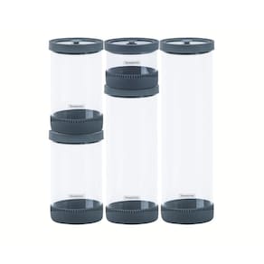 O design sofisticado e compacto desses potes os tornam a escolha ideal para quem busca funcionalidade, elegância e modernidade na cozinha. Garanta o seu jogo e armazene cereais, biscoitos, massas e sementes com facilidade e mantenha a despensa sempre organizada!