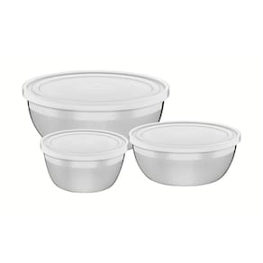 JOGO DE POTES EM AÇO INOX COM TAMPA PLÁSTICA TRAMONTINA FREEZINOX 3 PEÇAS 64220160