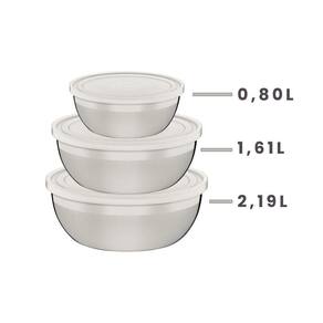 Sua cozinha vai ficar muito mais organizada com o Jogo de Potes em Aço Inox com Tampa Plástica Tramontina Freezinox 3 Peças. Perfeitos para preparar e armazenar alimentos, eles podem ser guardados na geladeira ou no freezer pois são super resistentes. São três peças produzidas em aço inox com modernos acabamento fosco com detalhes em brilho e tampa plástica com vedação perfeita, que transformam a aparência da sua cozinha. São super fáceis de limpar, podendo ir à máquina de lavar louças diariamente. Mais um jogo Tramontina pensado para tornar seu dia a dia mais prático!