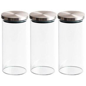 Jogo de Potes Herméticos de Vidro Redondo Tampa em Inox 1500ml 3 Peças - Vista Home