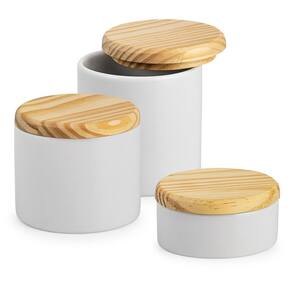 Jogo de potes porcelana tampa de madeira organizadores louça