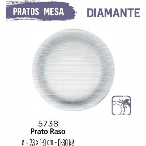 Jogo de prato diamante 06 pratos rasos - vidro Prato diamante de vidro raso 23cm