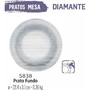 Jogo de prato diamante 06 pratos vidro fundos sopa caldos Prato diamante de vidro fundo 23cm sopa caldos