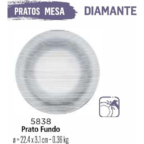 Jogo de prato diamante 12 pratos vidro fundos sopa caldos Prato diamante de vidro fundo 23cm sopa caldos