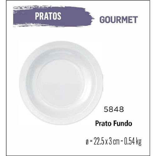 Jogo de prato gourmet 12 pratos fundo - 22cm branco Prato fundo caldo sopa gourmet 22cm vidro branco