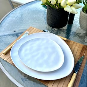 - jogo de pratos de jantar e sobremesa em cerâmica esmaltada - design orgânico inspirado na natureza - disponível em cores neutras que se adaptam a qualquer decoração - resistente e durável para uso diário - ideal para servir refeições elegantes em casa