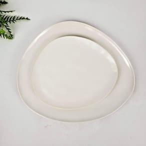 Jogo de prato jantar e sobremesa branco 32/23cm cerâmica 2pc Desfrute de refeições elegantes: jogo de pratos de jantar e sobremesa em cerâmica esmaltada com design orgânico em cores neutras inigual decor
