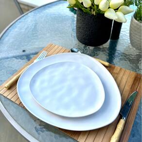 Jogo de prato jantar e sobremesa branco 32/23cm cerâmica 2pc Desfrute de refeições elegantes: jogo de pratos de jantar e sobremesa em cerâmica esmaltada com design orgânico em cores neutras inigual decor