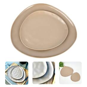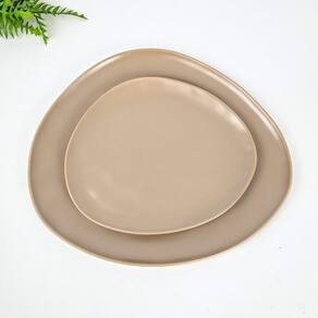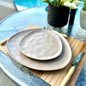 Jogo de prato jantar e sobremesa taupe 32/23cm cerâmica 2pc Desfrute de refeições elegantes: jogo de pratos de jantar e sobremesa em cerâmica esmaltada com design orgânico em cores neutras inigual decor