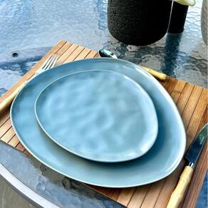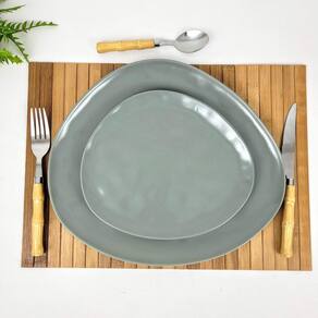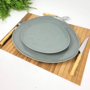 Jogo de prato jantar e sobremesa verde 32/23cm cerâmica 2pc