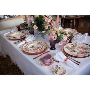 ficha técnica - fonte do produto: cerâmica alleanza - unidades por kit: 6 - tipo de prato de louça: raso - diâmetro: 28 - forma: redonda - formato de venda: kit - nome do desenho: florido - comprimento: 28 - cor: rosybrown. - material: cerâmica - utilizações seguras: microondas - cor: branco