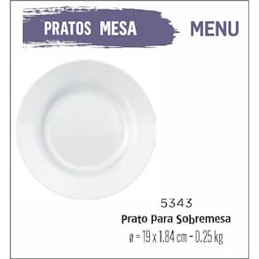Jogo de prato menu 12 pratos sobremesa - lanche - branco Prato menu sobremesa lanche 19cm - cerâmica branca