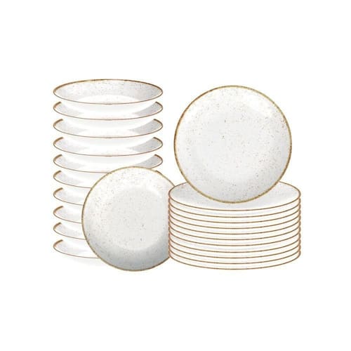 Fabricante: Tramontina | Louças e Artigos para Servir: Jogo de Pratos | Cor: Branco e Marrom | Quantidade de Peças: 24 | Selecione: Jogo de Pratos