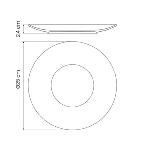 - Prato Raso: 2,4 cm A x 25 cm L x 25 cm P