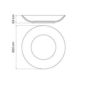 - Prato Fundo: 3,8 cm A x 22 cm L x 22 cm P