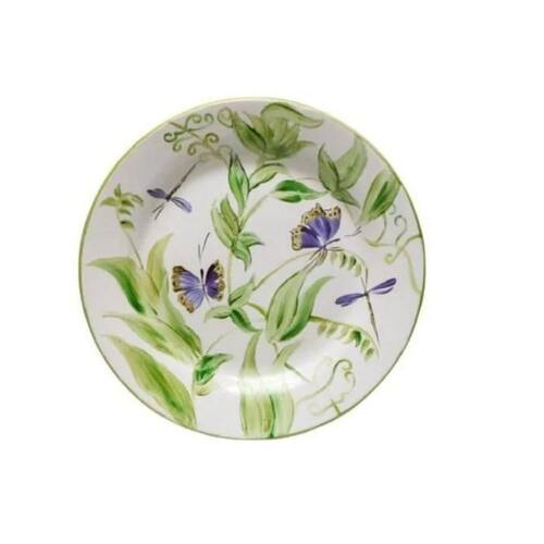 Jogo de pratos de jantar em cerâmica, com estampa de borboletas e libélulas, para deixar sua mesa ainda mais romântica. Recomendado utilizar somente em forno convencional para aquecer o gratinar até 20 minutos a 180C. Peças podem conter variações de cores por ser um produto artesanal. COMPOSIÇÃO -faiança -Feldspática Cerâmica de alta qualidade Manutenção e limpeza: -lavar as peças com a parte macia da esponja e sabão neutro. Não utilizar esponja abrasiva. Ficha técnica: - Forma: Circular - Diâmetro: 27 cm Marca: Não Informado