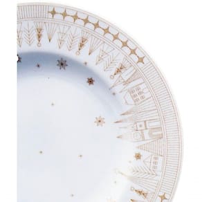 Jogo de Pratos de Sobremesa Natal Noel 12 Peças Porcelana Tradicional para Lanche Branco