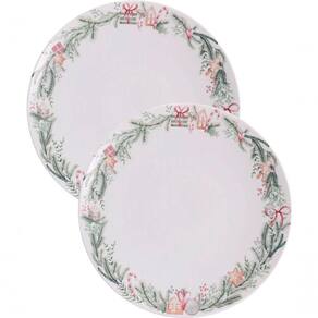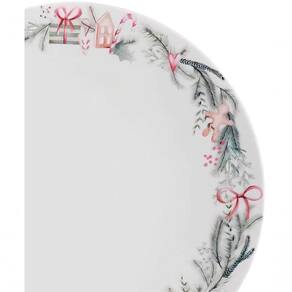 Jogo de Pratos de Sobremesa Noel Natal 10 Peças Porcelana Tradicional para Lanche Branco
