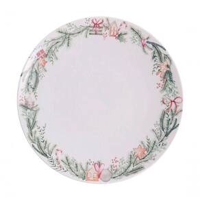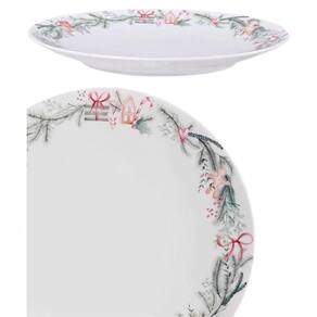 Jogo de Pratos de Sobremesa Noel Natal 12 Peças Porcelana Casual para Lanche Branco