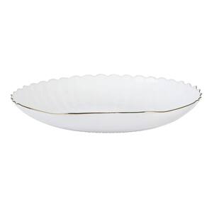 Kit 4 Pratos Fundos Tétis em Vidro Opalino com Borda Dourada 22,9cm - Elegância e Funcionalidade à Mesa O Kit com 4 Pratos Fundos Tétis é a escolha ideal para quem deseja compor uma mesa sofisticada com toques modernos. Fabricados em vidro opalino branco e com borda dourada delicada, oferecem elegância e praticidade no dia a dia ou em ocasiões especiais. Com 22,9cm de diâmetro, são perfeitos para servir sopas, massas, risotos e outras receitas com charme e funcionalidade. O acabamento opaco do vidro opalino garante um visual clean e atemporal, enquanto a borda dourada traz sofisticação à composição da mesa posta. Destaques do Produto: Design refinado: Borda dourada que adiciona um toque de requinte. Material resistente: Vidro opalino de alta durabilidade e acabamento uniforme. Tamanho ideal: 22,9cm de diâmetro, perfeito para pratos fundos e massas. Fácil manutenção: Pode ser levado à lava-louças. Kit com 4 unidades: Ideal para o dia a dia ou recepções. Especificações: Linha: Tétis Material: Vidro opalino Diâmetro: 22,9cm Altura aproximada: 4,5cm Cor: Branco com borda dourada Quantidade: 4 pratos fundos Marca: Não Informado Ean: 7898762848571