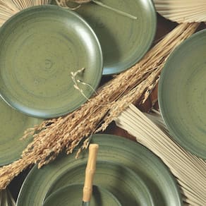 Acabamento Acetinado Premium: Cada prato exibe um sofisticado acabamento acetinado que não apenas realça a beleza natural da cerâmica mas também oferece uma durabilidade excepcional.