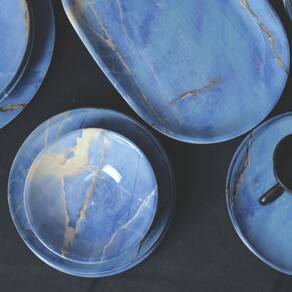 Acabamento Acetinado Premium: Cada prato exibe um sofisticado acabamento acetinado que não apenas realça a beleza natural da cerâmica mas também oferece uma durabilidade excepcional.