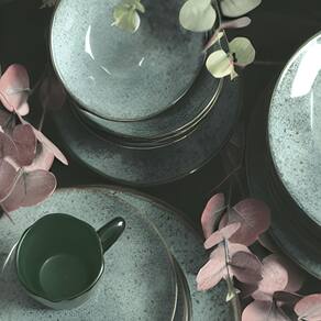 Acabamento Acetinado Premium: Cada prato exibe um sofisticado acabamento acetinado que não apenas realça a beleza natural da cerâmica mas também oferece uma durabilidade excepcional.