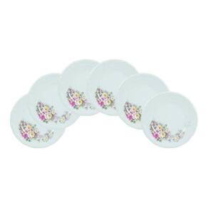 A delicadeza das rosas e a sutileza dos tons pásteis é o que define uma das decorações mais tradicionais da marca. O estojo é composto por 6 pratos rasos com 26 cm.