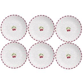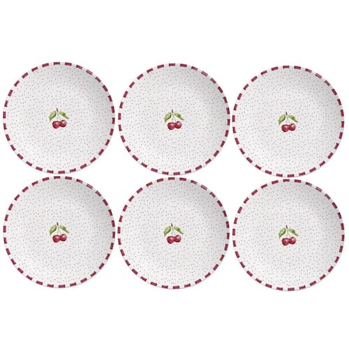 O Jogo de Pratos Rasos Amarena, da Alleanza é um conjunto de seis peças que combina funcionalidade com um design romântico. Perfeitos para quem busca unir estilo e praticidade no dia a dia, esses pratos trazem um design exclusivo com detalhes em cerejas vermelhas e delicados pontos, que adicionam um toque alegre e sofisticado à sua mesa.