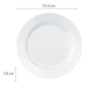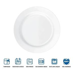 Fabricados em vidro branco temperado de alta qualidade, oferecem maior resistência a impactos e são extremamente higiênicos devido à ausência de porosidade. Podem ser utilizados em micro-ondas, freezer, geladeira e máquina de lavar-louças. Seja para ocasiões formais ou refeições do dia a dia, este jogo de pratos combina funcionalidade com estilo, proporcionando uma experiência gastronômica completa e refinada -------------------------------------------------------------------------------------------- Dimensões e peso: Diâmetro do prato: 24 cmaltura do prato: 1,91 cmpeso do prato: 375g