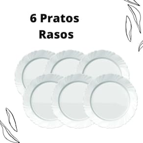 Jogo De Pratos Rasos Kit 6 Peças Em Vidro Almoço E Jantar