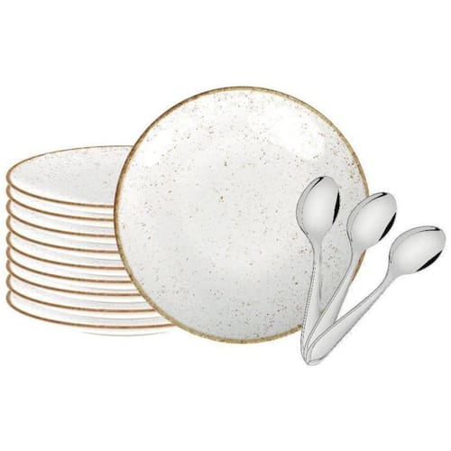 Com o Jogo de Pratos Rústico Porcelana Sobremesa 12Pç Colheres Laguna Tramontina, você terá um conjunto de alta qualidade para deixar suas refeições ainda mais especiais. Adquira já o seu e desfrute de toda a elegância e sofisticação que a Tramontina oferece. Marca: Não Informado