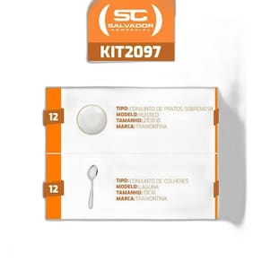 - Prato raso: 2,3 cm de altura x 21 cm de largura x 21 cm de profundidade - Diâmetro do prato raso: 21 cm - Colher de sobremesa: 1,9 cm de altura x 3,8 cm de largura x 16,5 cm de profundidade - Embalagem: 20 cm de altura x 23 cm de largura x 23 cm de profundidade - Peso líquido: 5 kg - Peso bruto: 5,20 kg
